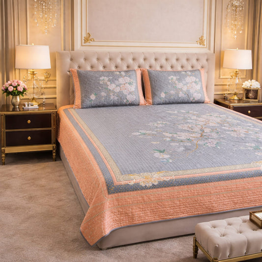 Beautiful Grey & Orange Floral Digital Bedcover